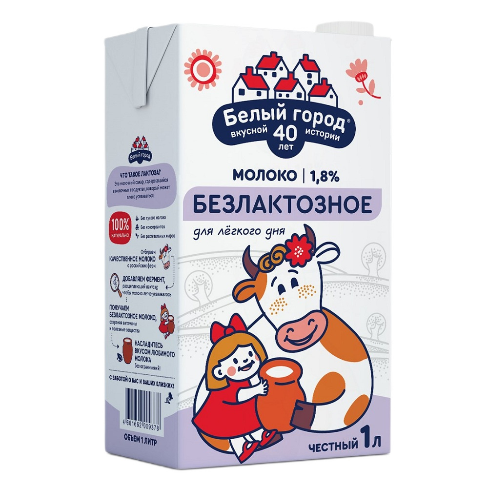 Молоко Белый город 1,8% ультрапастеризованное безлактозное, 1 л