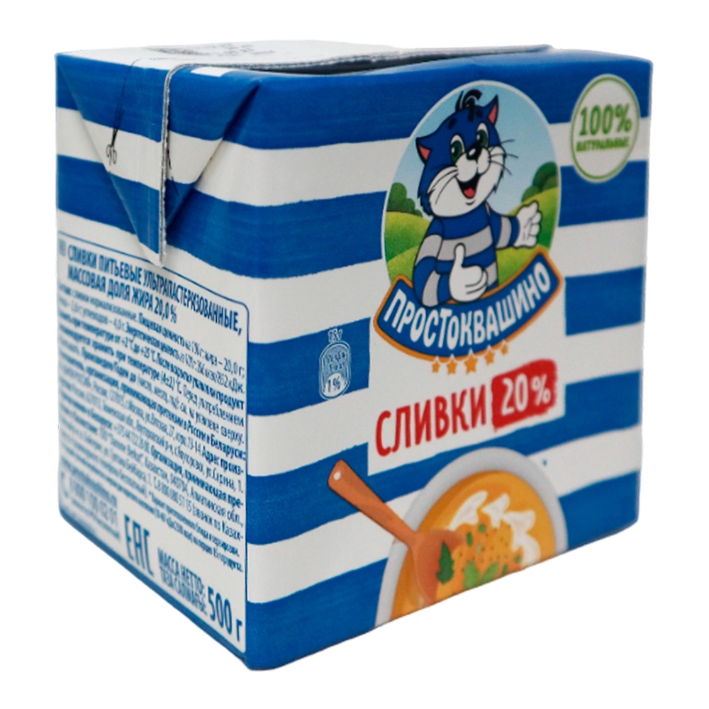 Сливки питьевые Простоквашино ультрапастеризованные 20%, 500 г