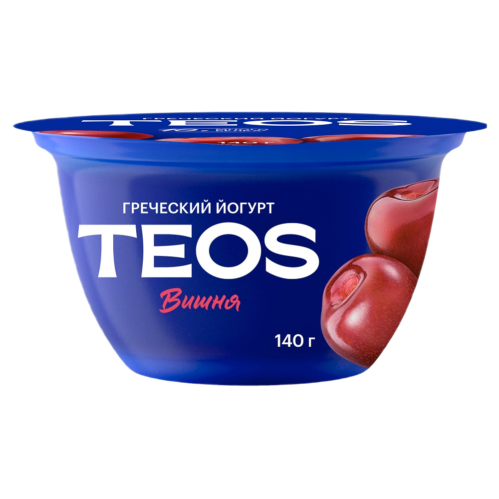 Йогурт греческий Teos с фруктовым наполнителем вишня 2%, 140 г