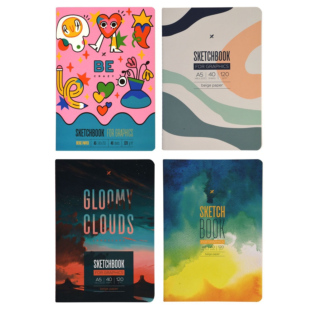 Скетчбук Lorex Stitch Gradient Touch А5, 40 листов, бежевая бумага 120 г/м2, мягкая обложка, soft touch